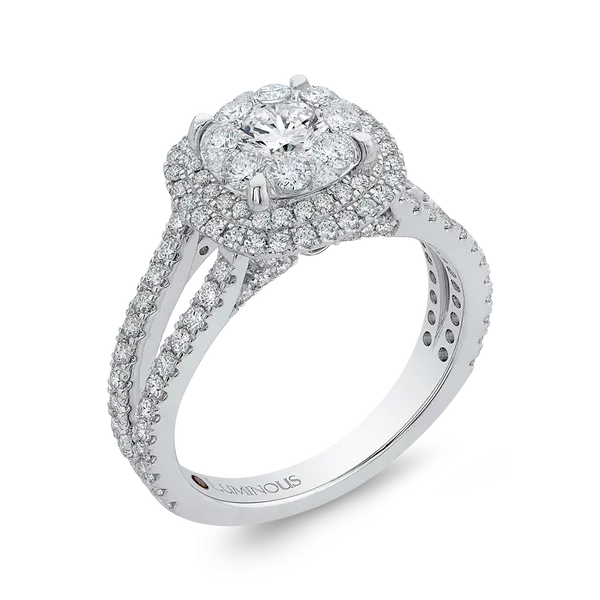 Round Diamond Double Halo Engagement Ring with Blue Sapphire in 14K White Gold