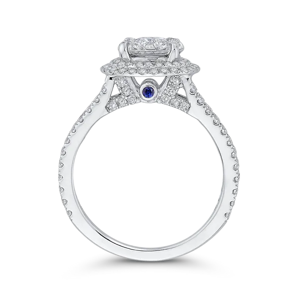 Round Diamond Double Halo Engagement Ring with Blue Sapphire in 14K White Gold Image 3 McChristy Jewelers Columbus, NE