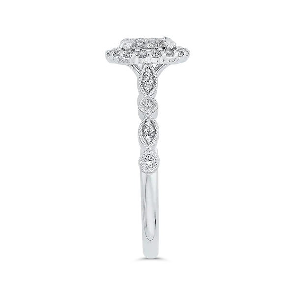 3. Round Diamond Halo Engagement Ring in 14K White Gold