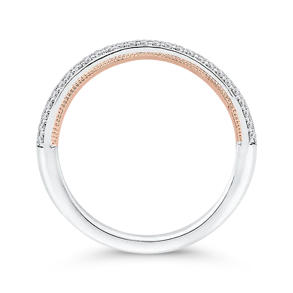 Round Diamond Half-Eternity Wedding Band in 14K Two Tone Gold