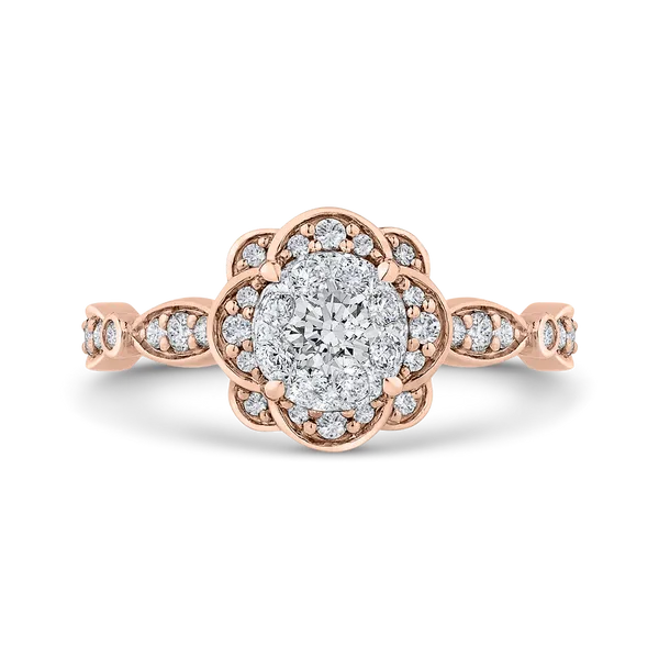 3. Round Diamond Flower Engagement Ring in 14K Two Tone Gold